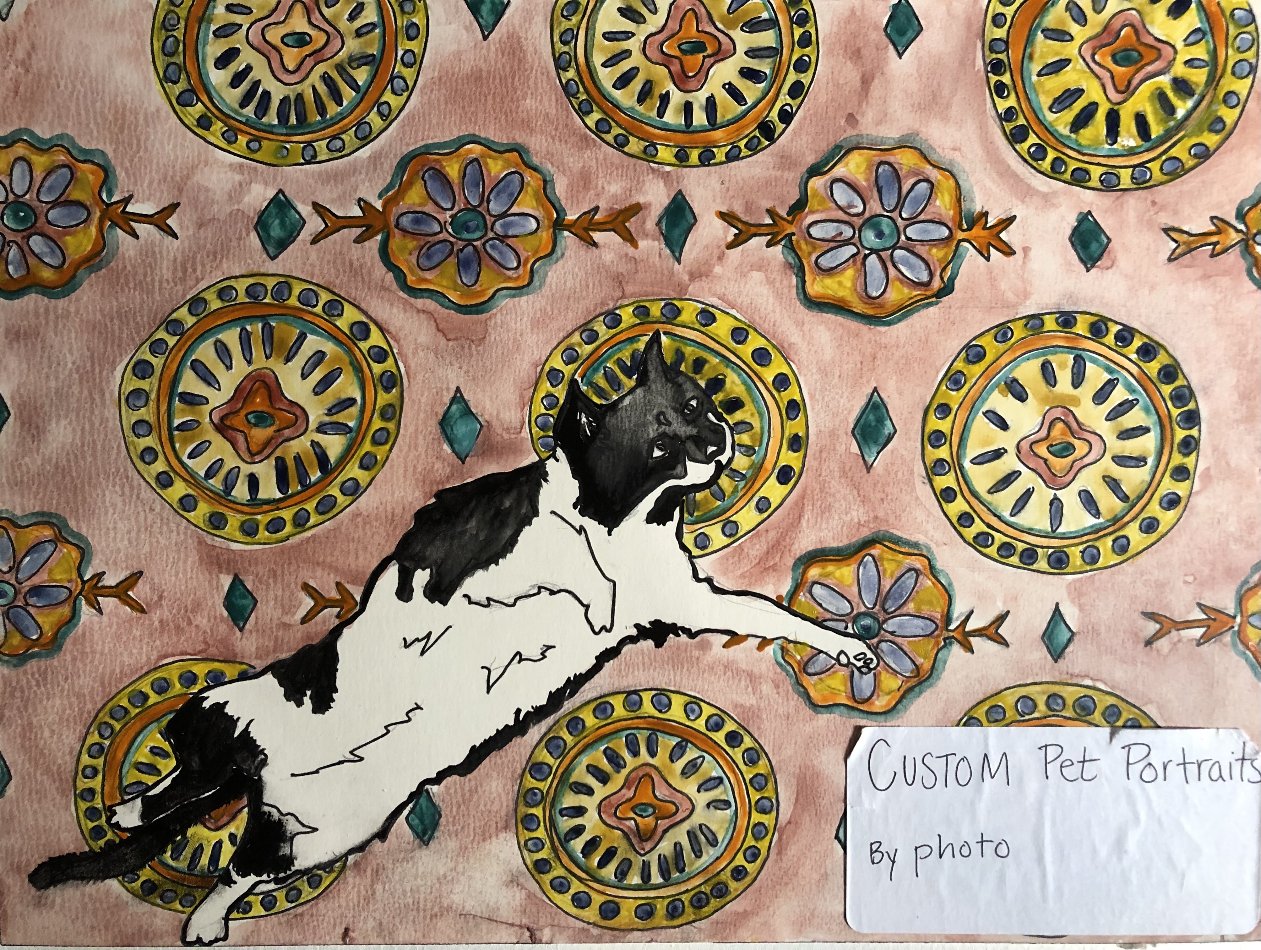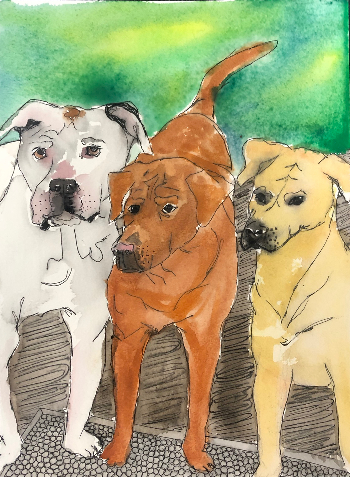Examples of Custom Pet Portraits- Ink and Watercolor